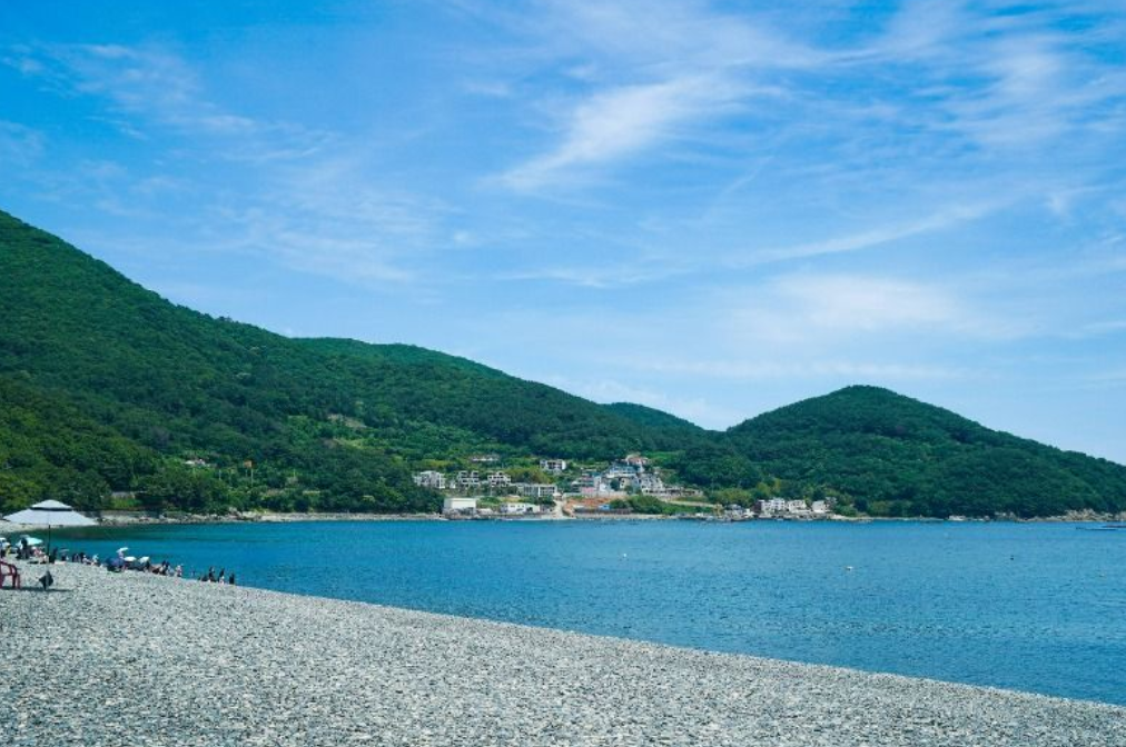 모래 대신 동글동글하고 매끄러운 검은 몽돌이 깔린 이 해변은 거제 바다가 선사하는 가장 아름다운 소리를 간직하고 있습니다. 파도가 밀려왔다 나갈 때마다 몽돌들이 서로 부딪히며 내는 '자르르' 소리는 세상 어디에도 없는 천연의 연주곡이 되어 여행자의 마음을 다독여줍니다.