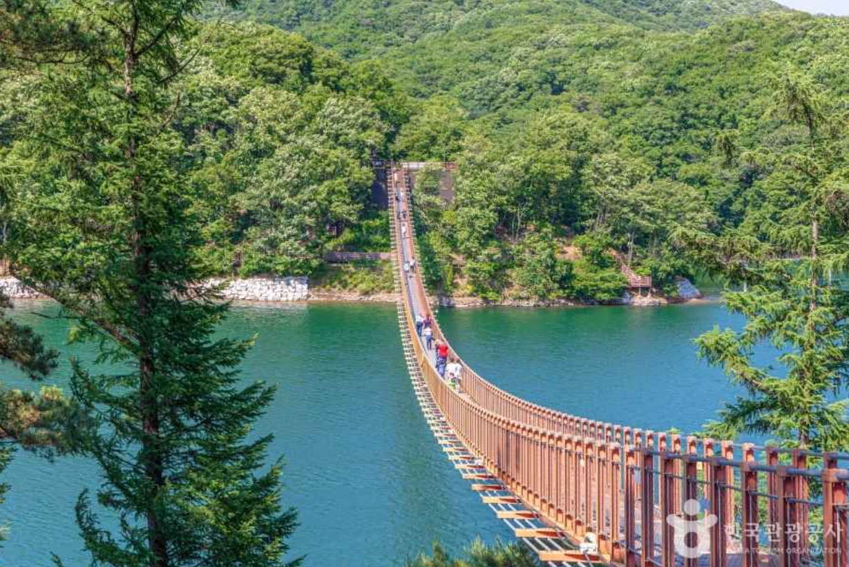 길이 220m의 아찔한 출렁다리가 호수를 가로지르는 이곳은 파주의 역동적인 매력을 보여줍니다. 호수 위를 걷는 듯한 짜릿한 전율과 함께 발아래로 펼쳐지는 옥빛 물결을 바라보고 있으면 가슴 속 답답함이 시원하게 뚫리는 해방감을 만끽하게 됩니다. 다리를 건넌 후 이어지는 호수 둘레길은 마음을 차분하게 가라앉히는 산림욕의 즐거움까지 선사합니다.