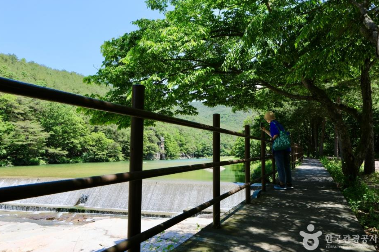 괴산의 젖줄인 괴강을 따라 조성된 이곳은 수백 년 된 느티나무들이 늘어서 있어 고아한 멋과 여유를 선사합니다. 강물 위로 비치는 노을을 바라보며 산책로를 걷다 보면 어촌 마을의 정겨움과 강변의 평화로움이 마음을 따스하게 어루만져 주는데, 시원하게 뻗은 느티나무 아래 앉아 흐르는 물을 바라보는 것만으로도 일상의 번잡함을 잊고 온전한 쉼표를 찍을 수 있습니다.