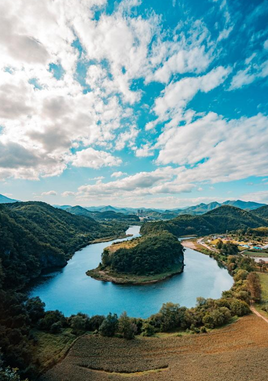 평창강 끝자락에 위치한 이곳은 강물의 침식 작용으로 만들어진 지형이 신기하게도 한반도 지도를 쏙 빼닮아 감탄을 자아냅니다. 전망대에 올라 굽이치는 강줄기와 그 안의 푸른 숲을 바라보고 있으면 자연이 빚어낸 정교한 예술 작품 앞에 겸허해지며, 탁 트인 시야는 막막했던 일상의 고민들을 아주 작은 점처럼 느껴지게 하는 마법 같은 해방감을 선사합니다.