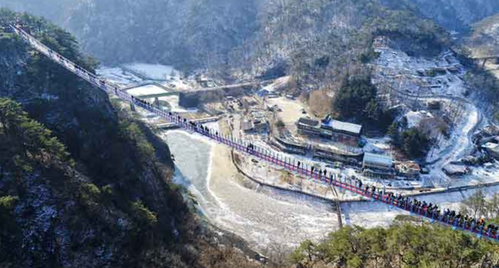 두 번째는 역동적 해방감입니다. 소금산의 출렁다리를 통해 일상의 지루함을 깨뜨리는 짜릿한 자극을 선사합니다.