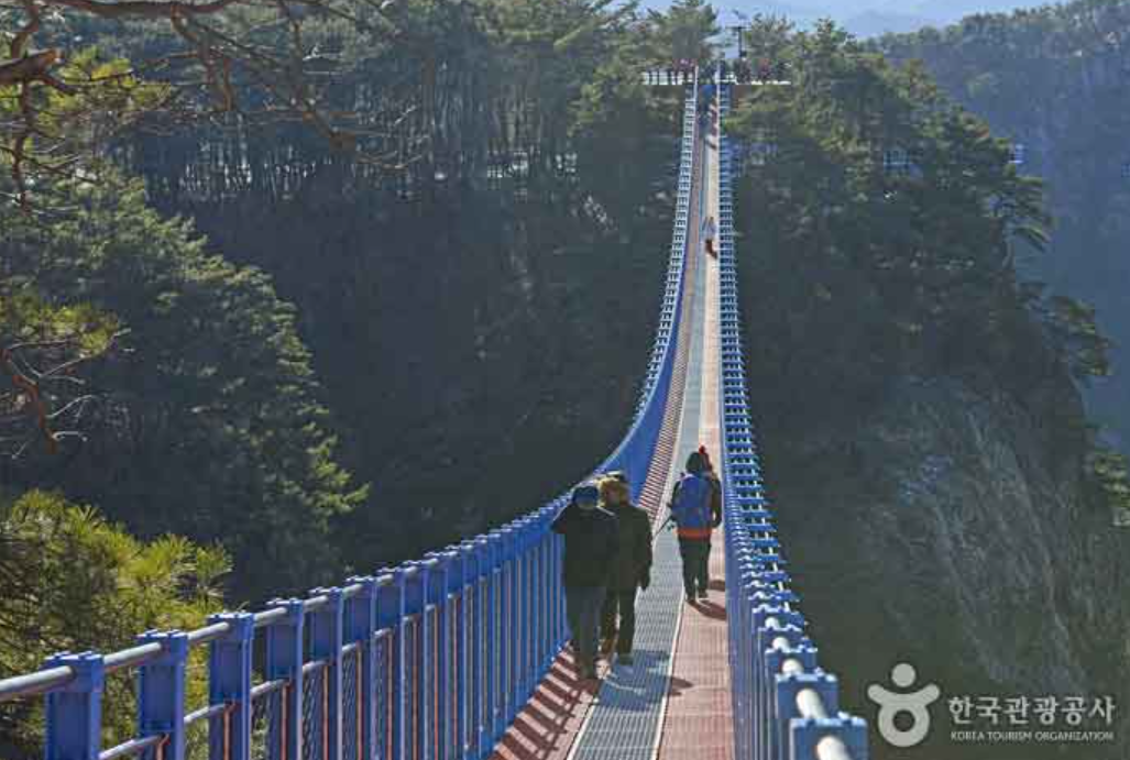 소금산 출렁다리와 울렁다리는 원주를 대표하는 액티비티 명소로, 깎아지른 절벽 사이를 연결해 구름 위를 걷는 듯한 짜릿함을 선사합니다. 다리 중간에서 내려다보는 간현관광지의 비경과 굽이치는 강줄기는 가슴을 시원하게 뚫어주는 압도적인 개방감을 제공하죠. 아찔한 높이에서 느끼는 공포를 이겨내고 한 걸음씩 내딛다 보면 어느새 두려움은 환희로 변하게 됩니다.