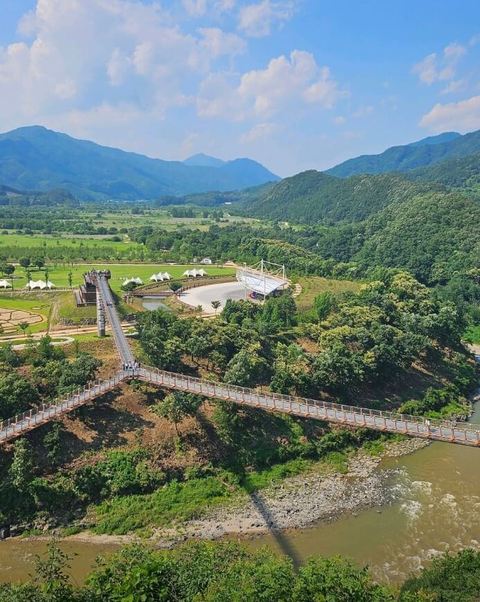 한탄강 협곡을 가로지르는 하늘다리는 지상 50미터 높이에서 강물을 내려다볼 수 있는 아찔한 경험을 제공합니다. 다리 중간중간 설치된 유리 바닥 위를 걸을 때 느껴지는 전율은 여행의 재미를 더해줍니다.